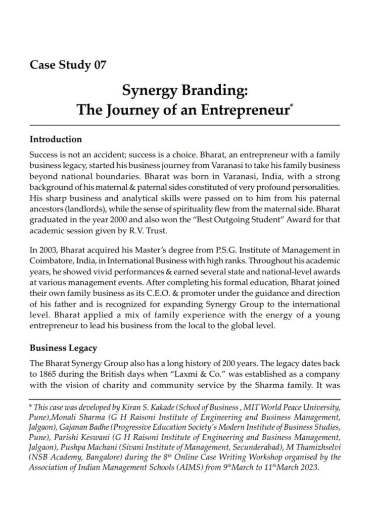This case study is designed to enhance the learning experience for management students and professionals, delving into the inspiring journey of Bharat, a passionate young entrepreneur. By seamlessly blending family experience with youthful energy, Bharat navigated his business from a local scale to a global triumph.