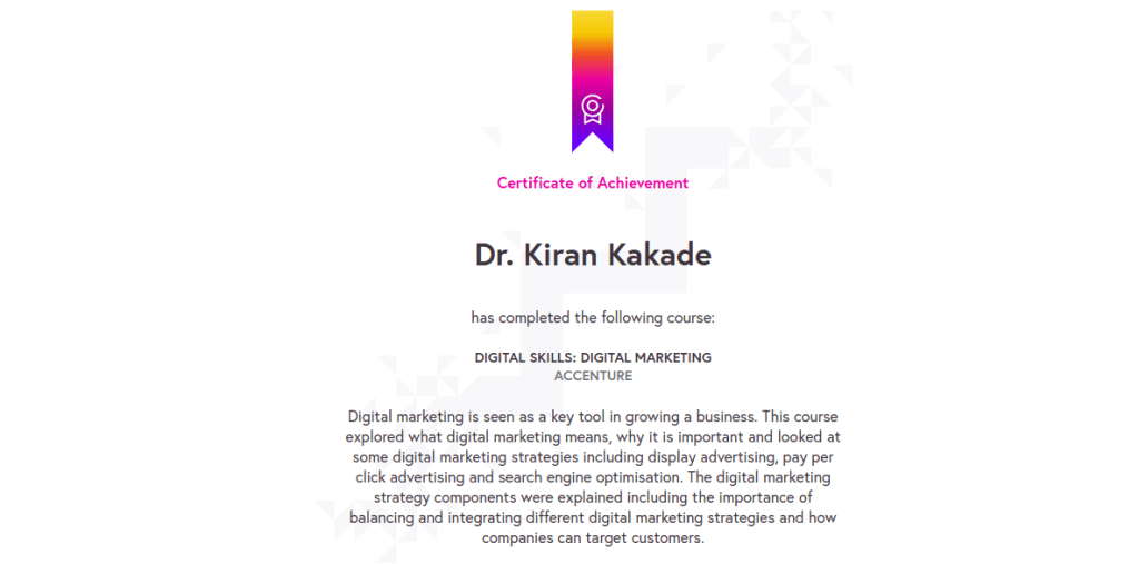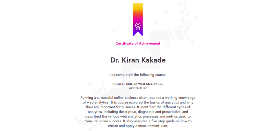 Completed “Digital Marketing Programme in Web Analytics and Social Media” from Accenture