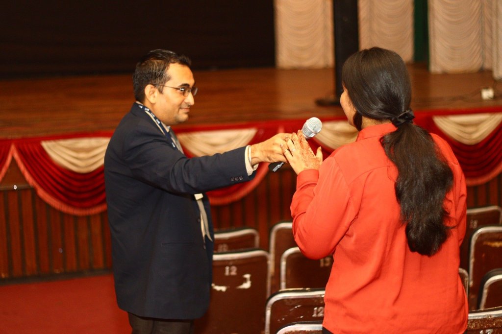 Felicitating the Media Recruiter from ABC consultants for conducting a guest session on opportunities in the recruitment sector.