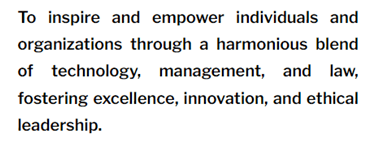Academic Excellence: Pursue continuous professional development in the fields of Management, Technology, and Law to ensure academic excellence in my role.